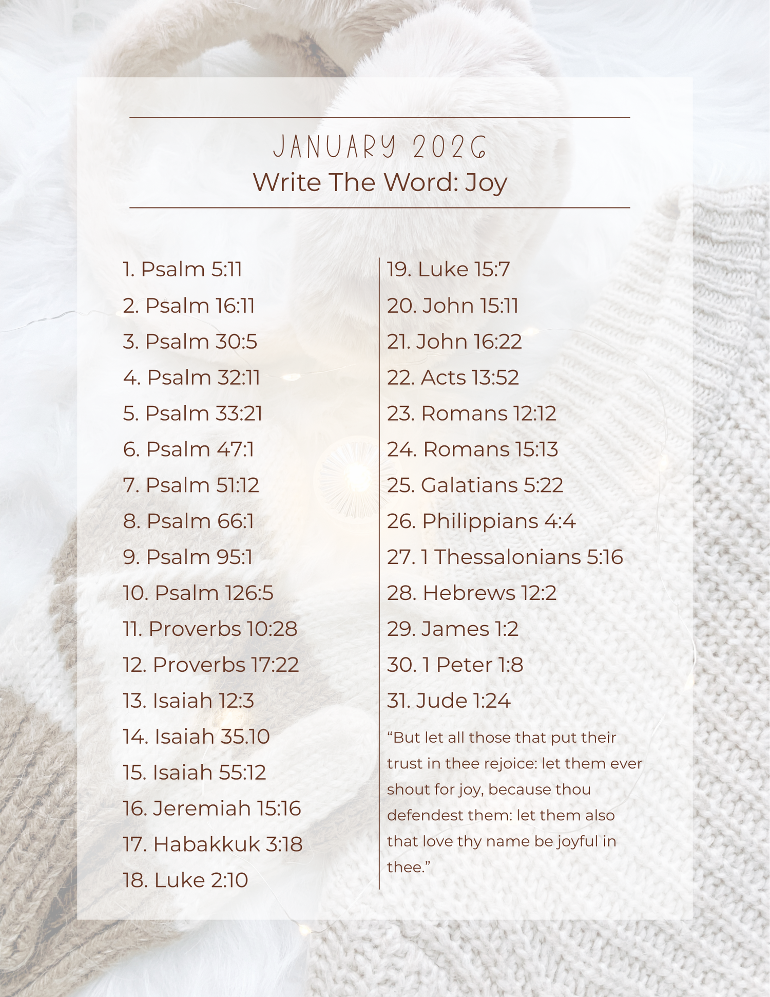 Join me in my daily Scripture writing series "Joy" for January 2026. Grab your planner or notebook and pen and start with me on January 1st!