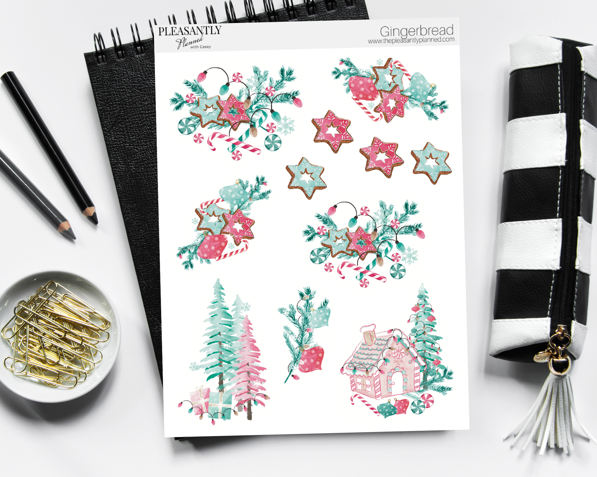 Large sheet is 6.75 x 9.25, Small sticker sheet is 6.75 x 4.625, Mini sticker sheet is 3.4 x 2.3